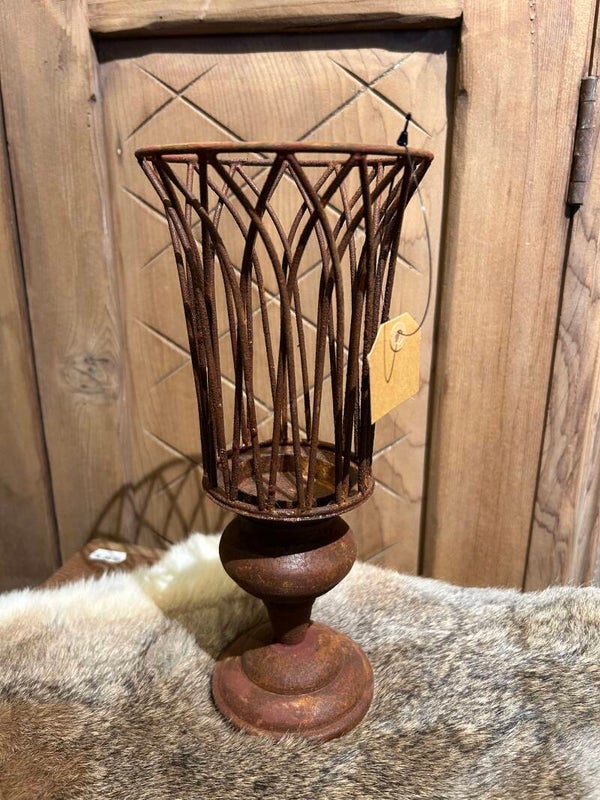 Prachtige roestige kandelaar / kaarsenhouder op voet.