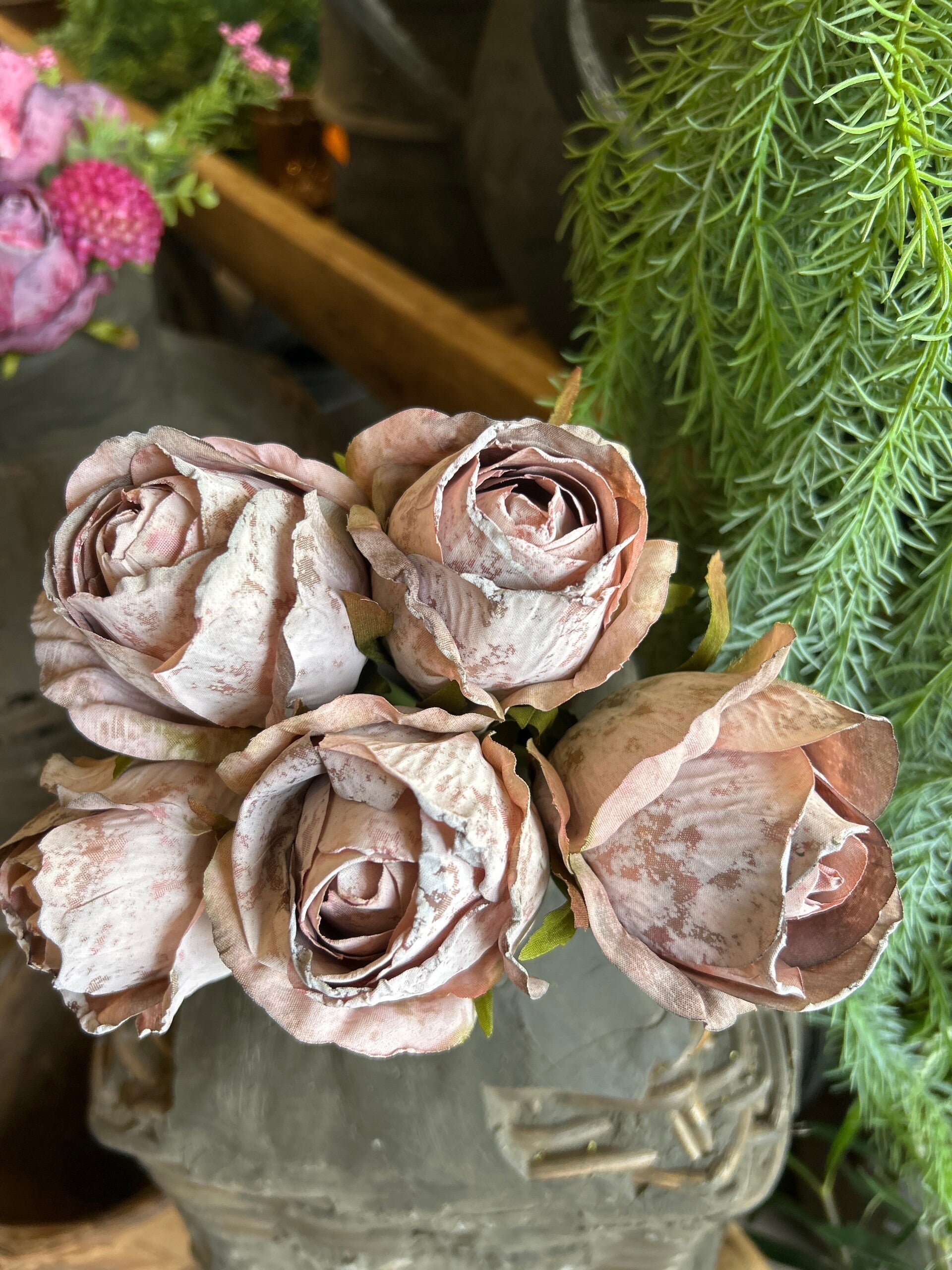 Stijlvolle rozen met een oud-verweerde look, perfect voor een landelijke of romantische sfeer.