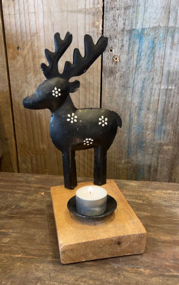 Deze metalen figuren op houten voet zijn perfect voor een landelijke of sobere kerststijl.