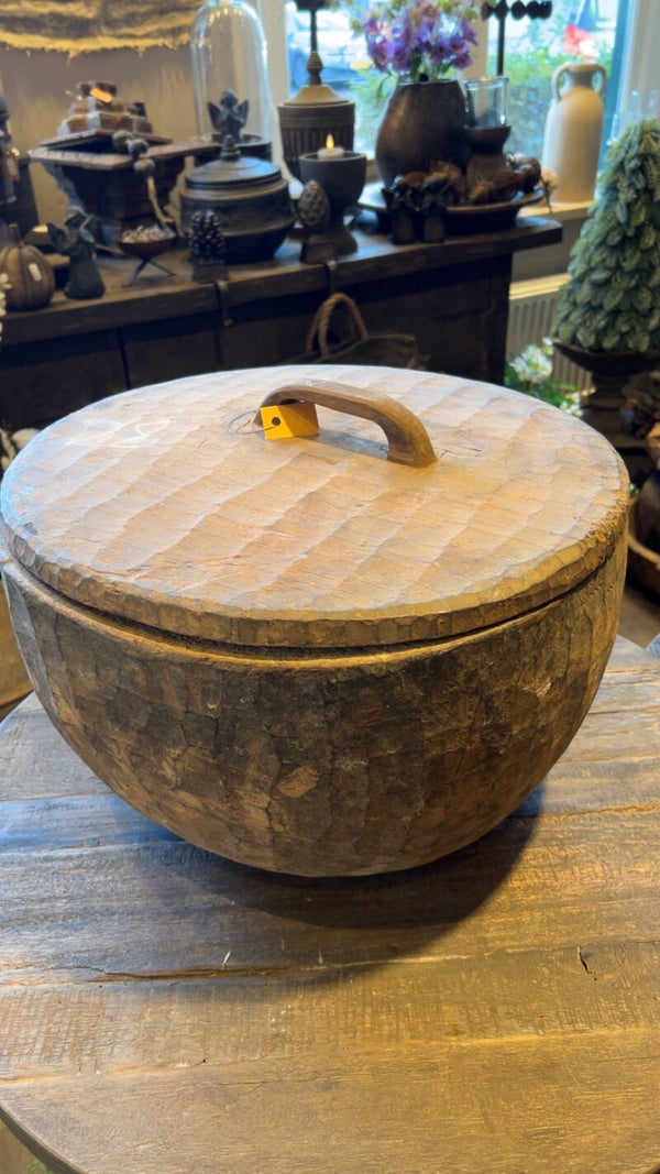 Grote houten pot met deksel