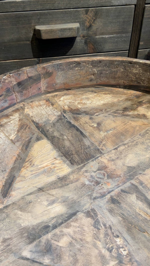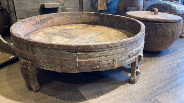 Een unieke, doorleefde Nepalese Chakki tafel met karakter!