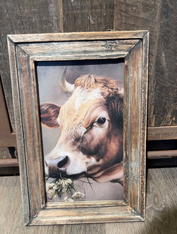 Prachtige houten lijst met vergrijsde look en sfeervolle afbeelding in sobere, landelijke stijl.