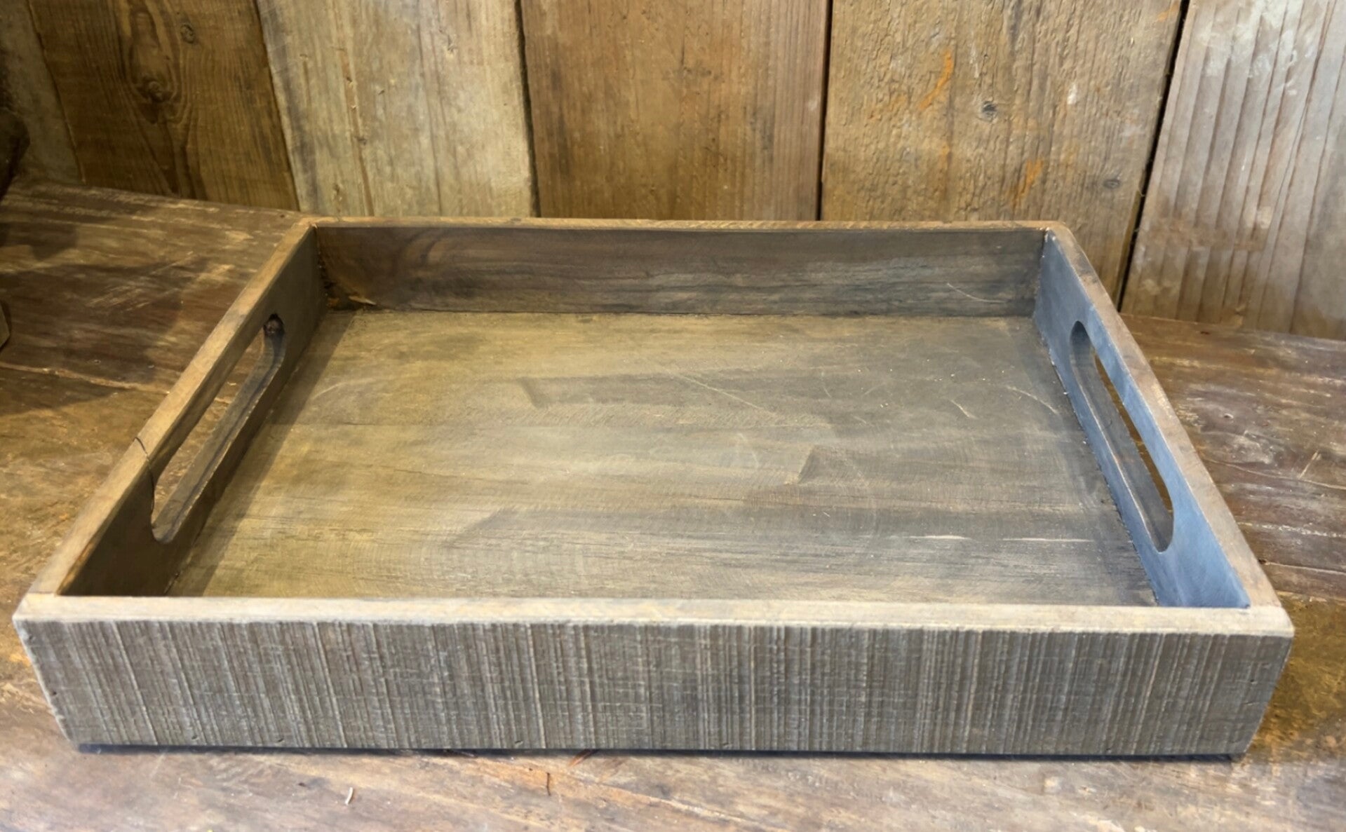 Mooi robuust houten dienblad met ingezaagde handgrepen aan de zijkant.