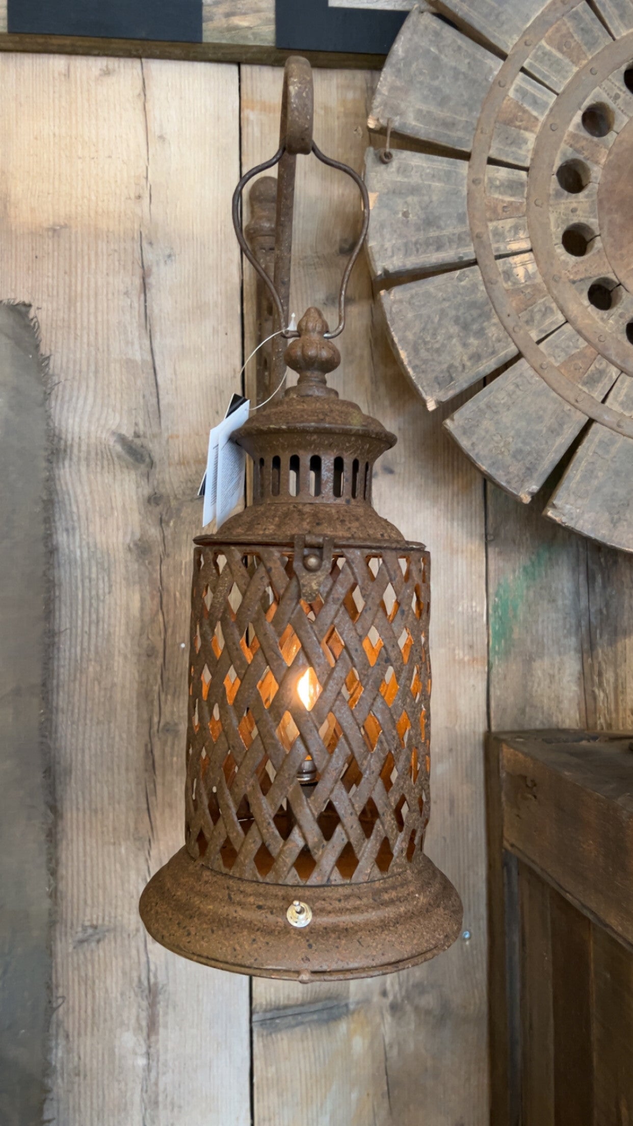 De lantaarn heeft een stoere, doorleefde uitstraling en verspreidt een warm, sfeervol licht.