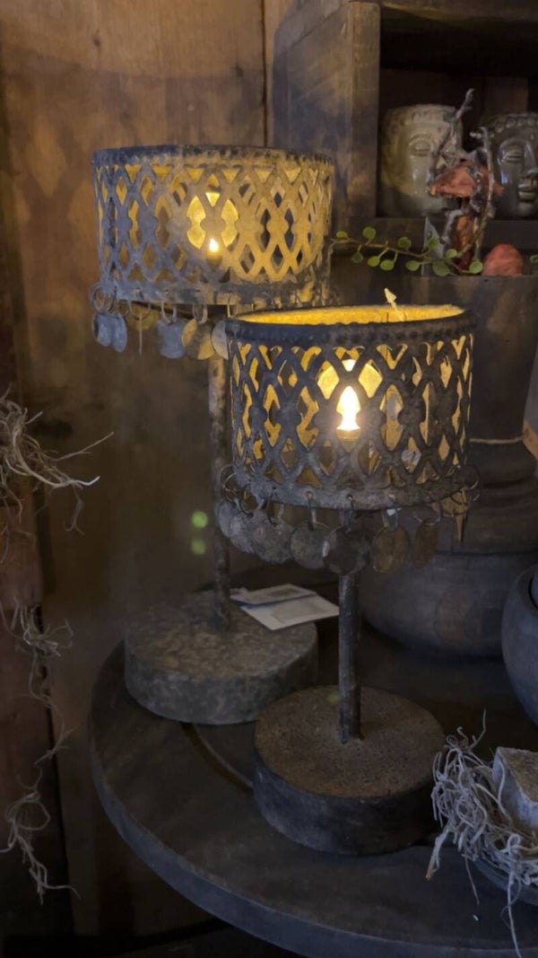 Stoer metalen lampje van Countryfield met een uniek, doorleefd uiterlijk.