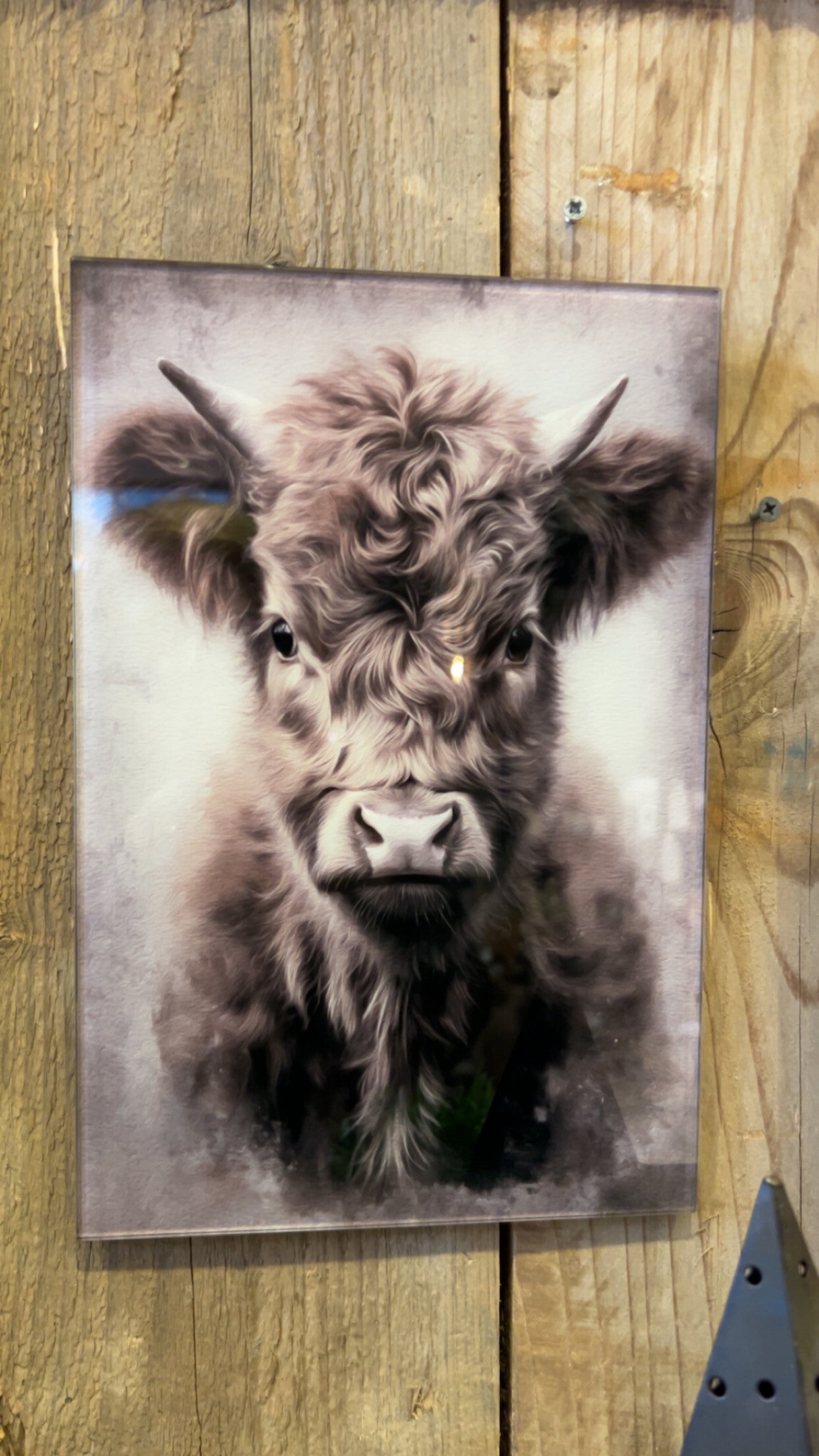 Stoer én stijlvol wandpaneel van glas met een prachtige Highlander.