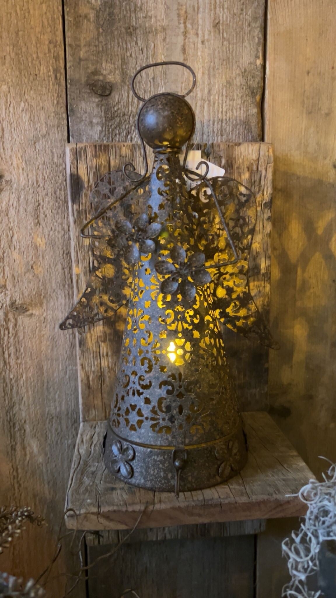 Deze prachtige roestkleurige Countryfield engel is een echte sfeermaker voor het najaar en de kerstperiode. Het metalen filigrein patroon laat het warme LED-licht prachtig doorheen schijnen, waardoor er een gezellig schaduwspel ontstaat op de muur. De bloemdetails maken haar extra sierlijk en uniek.