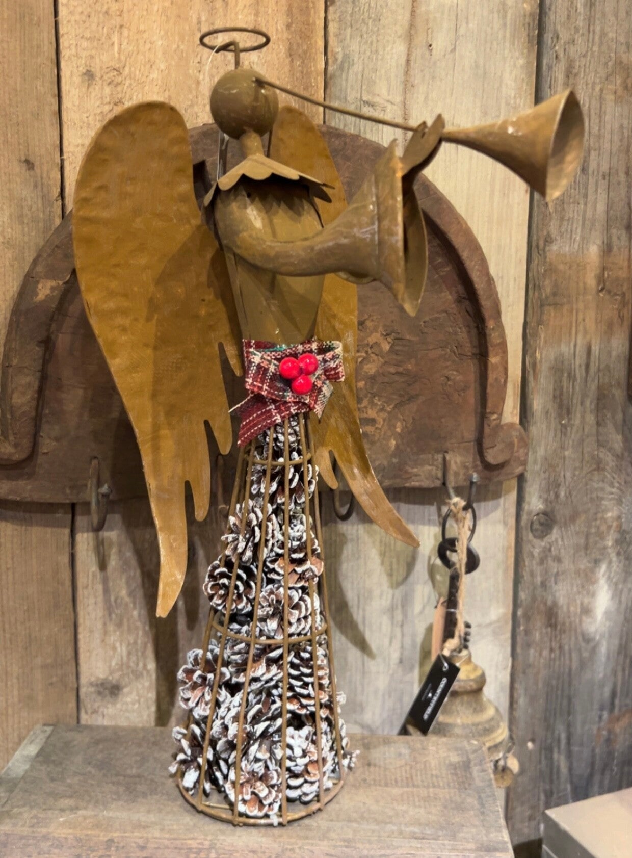 Deze prachtige metalen engel brengt meteen sfeer in huis.