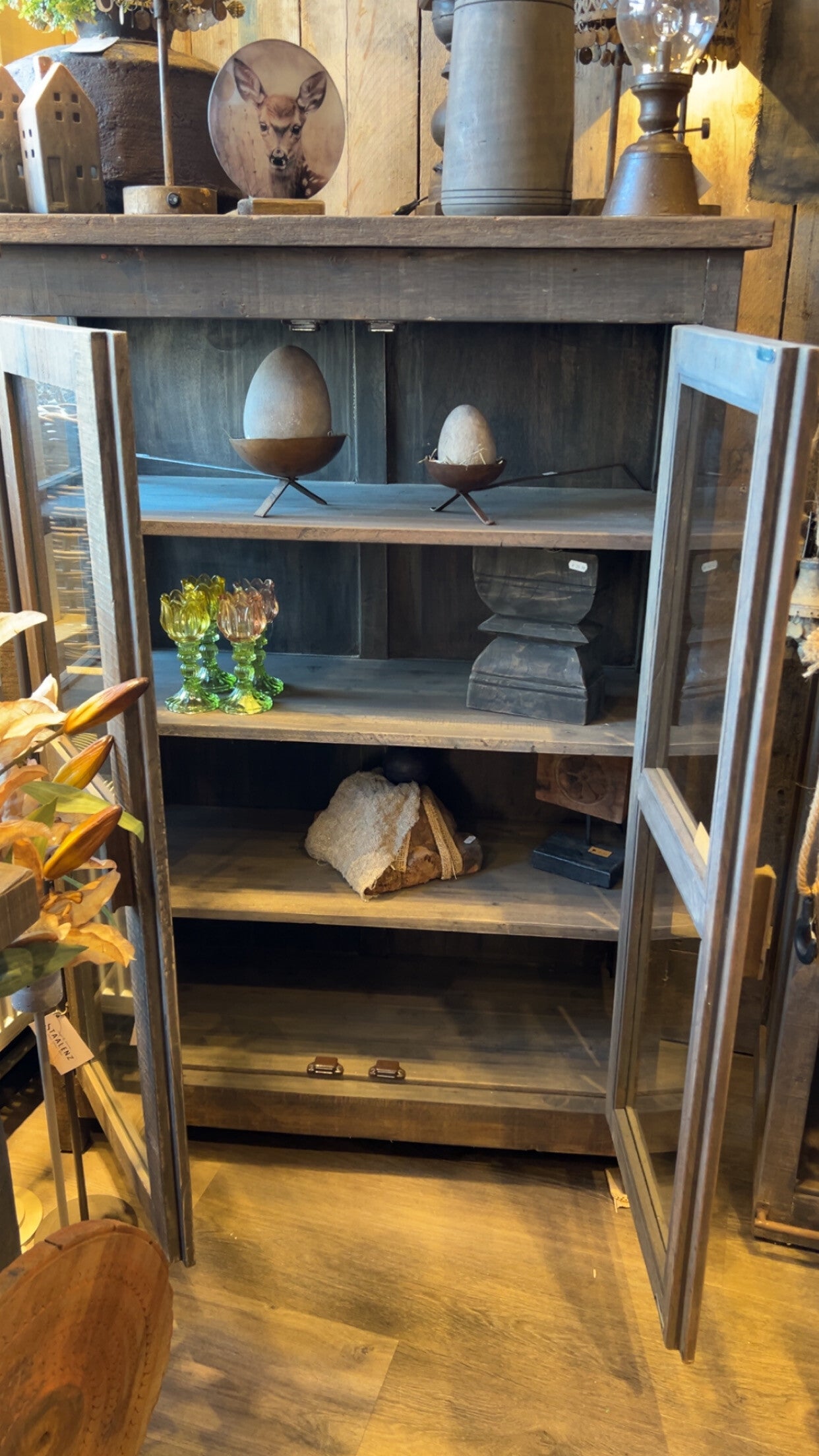 Stoere driftwood vitrine kast