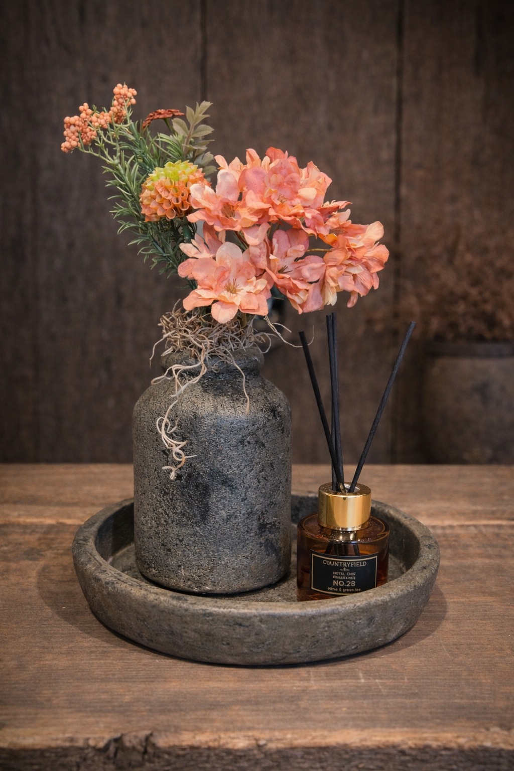 Sfeersetje met rond vaasje & geur diffuser